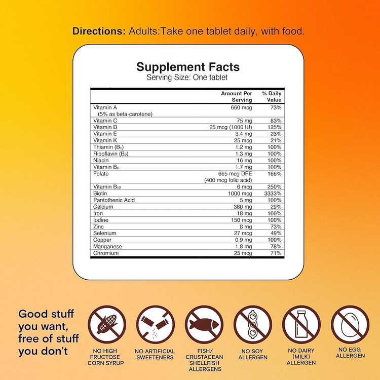 مولتی ویتامین زنانه وان ا دی One-a-Day Women’s Formula فاقد شربت ذرت با فروکتوز بالا، آلرژن های ماهی، سخت پوستان، طعم دهنده ها و شیرین کننده های مصنوعی است.