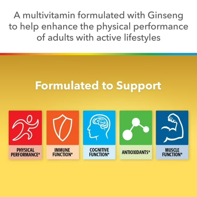 پرفورمنس با جینسینگ سنتروم Centrum Performance برای کاهش خستگی ذهنی فرموله شده است. همچنین به حمایت از متابولیسم انرژی با ویتامین های B کمک می کند. Centrum Performance به افزایش عملکرد فیزیکی، حمایت از سیستم ایمنی و عملکرد شناختی، حفظ عملکرد ماهیچه ها و ارائه آنتی اکسیدان برای محافظت از سلول ها در برابر آسیب رادیکال های آزاد کمک می کند. Centrum Performance از ویتامین A تا روی را شامل می شود و حاوی ریز مغذیهایی است که به تغذیه بدن شما در سطح سلولی و حمایت از سلامتی کمک میکند. با پشتوانه بیش از 35 سال تخصص در علم تغذیه، Centrum اولین برند مولتی ویتامین و برند شماره 1 فروش مولتی ویتامین در کانادا است.